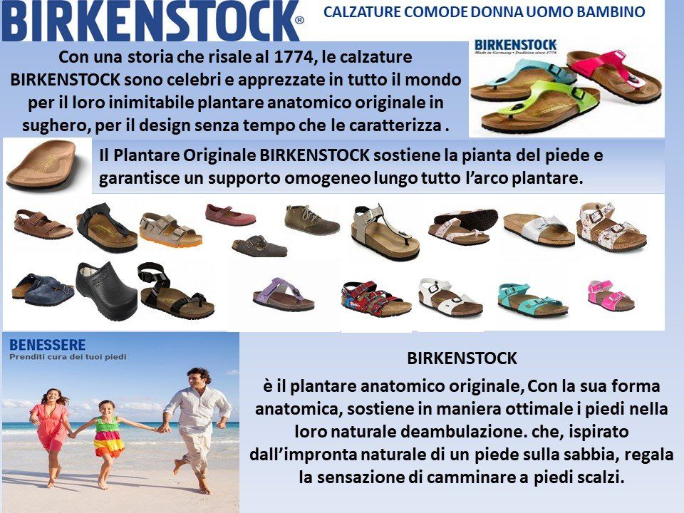 Con una storia che risale al 1774, le calzature BIRKENSTOCK sono celebri e apprezzate in tutto il mondo per il loro inimitabile plantare anatomico originale in sughero, per il design senza tempo che le caratterizza. Presso Sanitas Ortopedia a Viterbo è possibile trovare questi utilissimi prodotti, sia per la stagione invernale che per quella estiva. BIRKENSTOCK è il plantare anatomico originale, con la sua forma anatomica, sostiene in maniera ottimale i piedi nella loro naturale deambulazione che, ispirato dall’impronta naturale di un piede sulla sabbia, regala la sensazione di camminare a piedi scalzi. negozio autorizzato birkentock da oltre 30 anni.